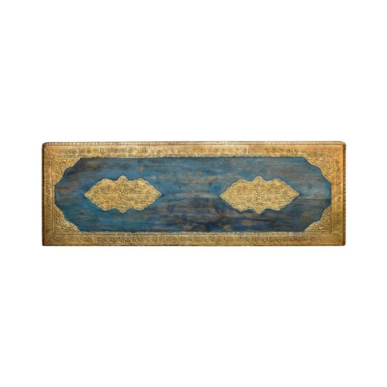 What makes this 2 drawer console table gorgeous is the blue finish with inlaid brass & complimenting hardware.