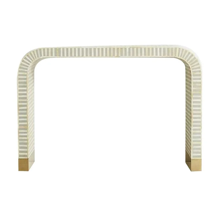 This stunning bone inlay console table comes with gorgeous metal legs set in the stripe pattern in grey and white colour.