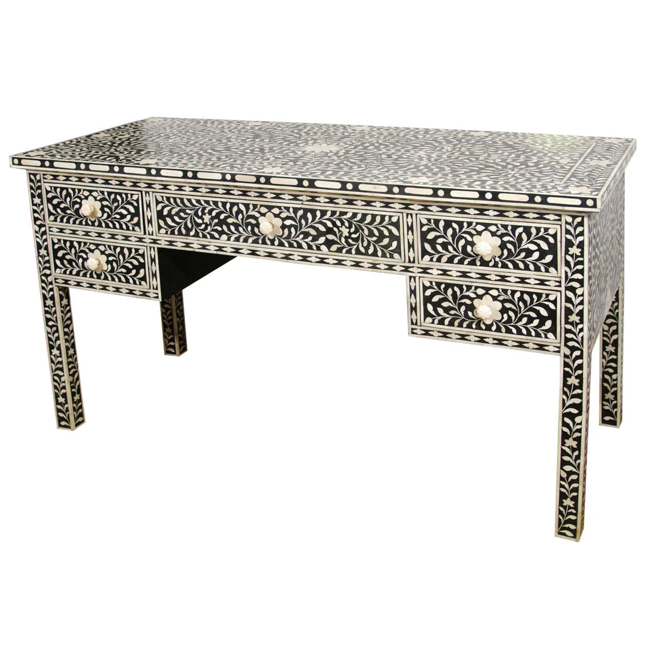 This lovely Bone inlaid study desk comes with 5 drawers & completely hand inlaid exteriors.