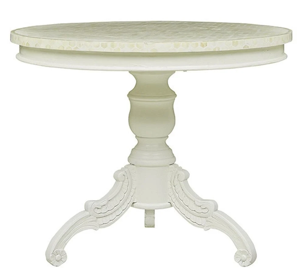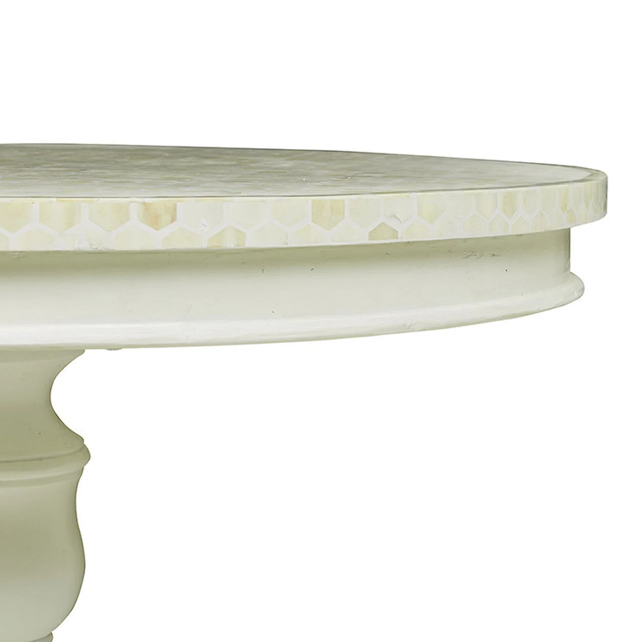 This beautiful round dining table is made in a honey comb pattern using bone inlay technique set in ivory coloured resin.