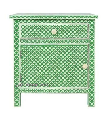 Our bone inlay side tables not only look gorgeous but are super practical too! They have one drawer on top for your absolute bed time essentials and a bigger compartment with one door below the drawer to keep other items.