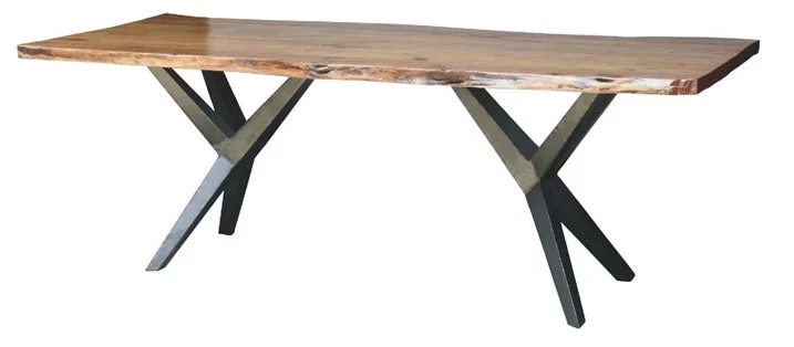 It has a plain natural wood finished top & black metal legs in an unique design to compliment the simple top.