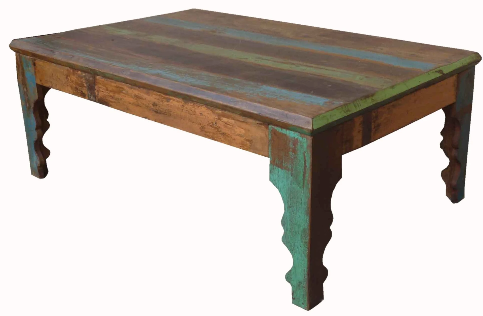 It is made from recycled wood & comes with a simple table top. The carved legs perfectly compliment this otherwise simple table & provide a beautiful balance.