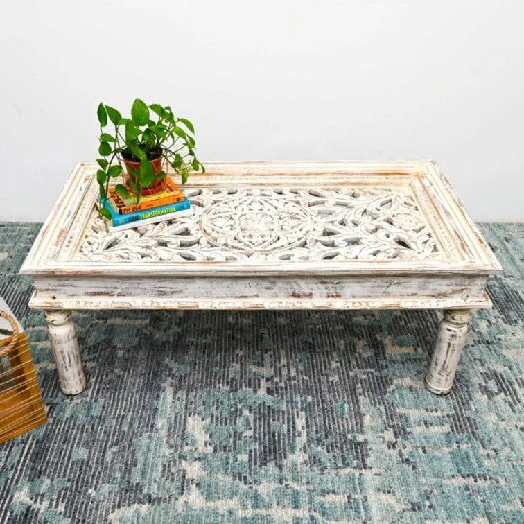 A cute but gorgeous wooden hand carved coffee table for a family room or bedroom set up!